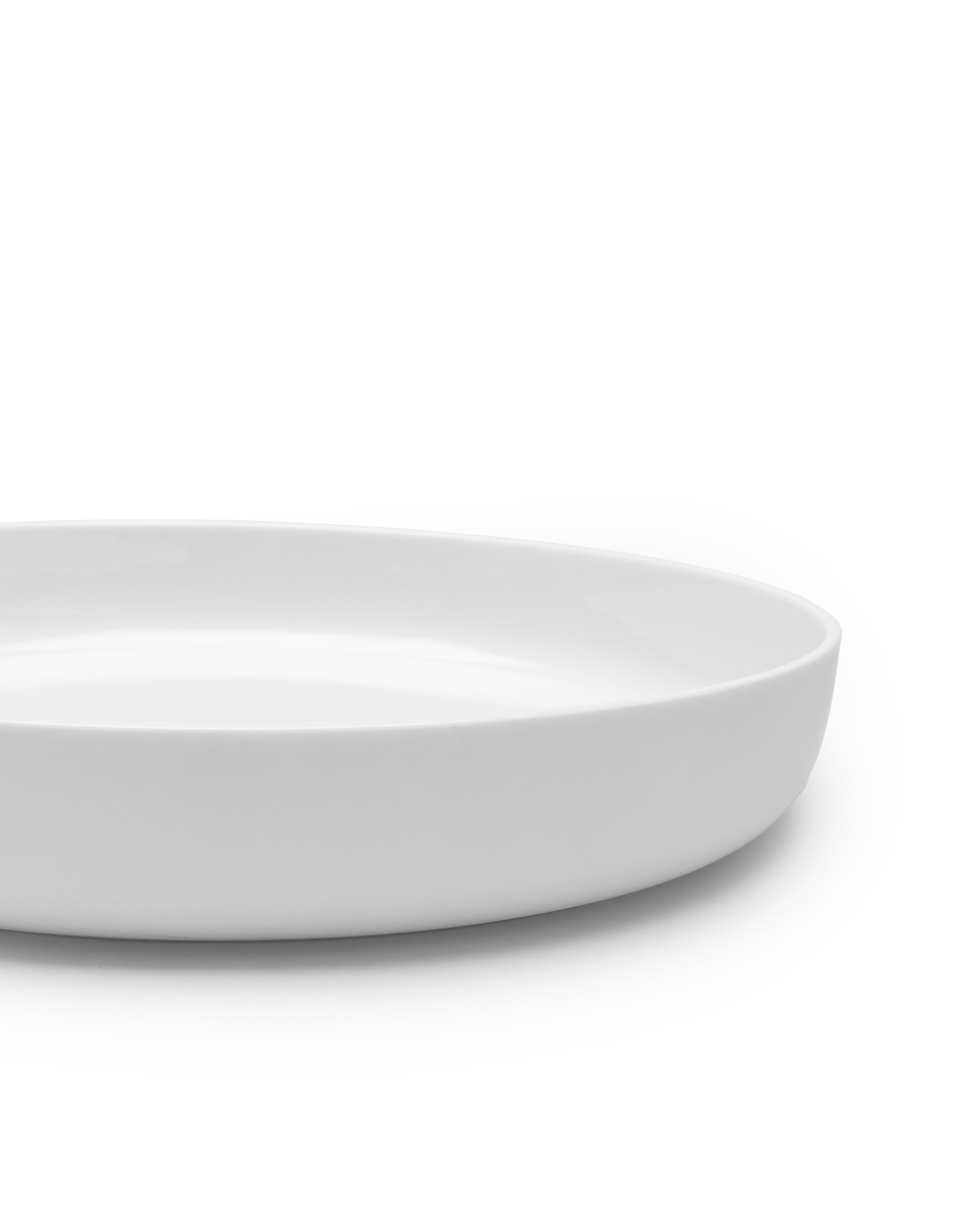 Dit extra grote diepe bord is ideaal voor het serveren van pasta's, risotto's, soepen, stoofschotels, curry's of andere gerechten met saus. Ook perfect als presentatiebord voor hoofdgerechten. De verhoogde rand houdt vloeistoffen goed vast. De witte afwerking geeft een tijdloze, elegante uitstraling die perfect past bij elke tafel.