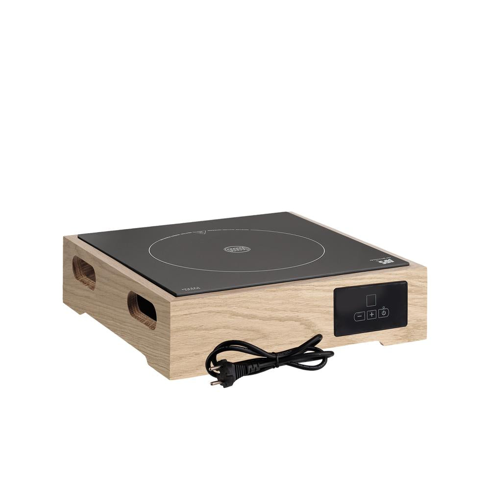Inductiekookplaat, 2.000 watt, eikenhouten frame (watervast gelakt), met afstandsbediening, vermogen in 5 standen regelbaar Read more