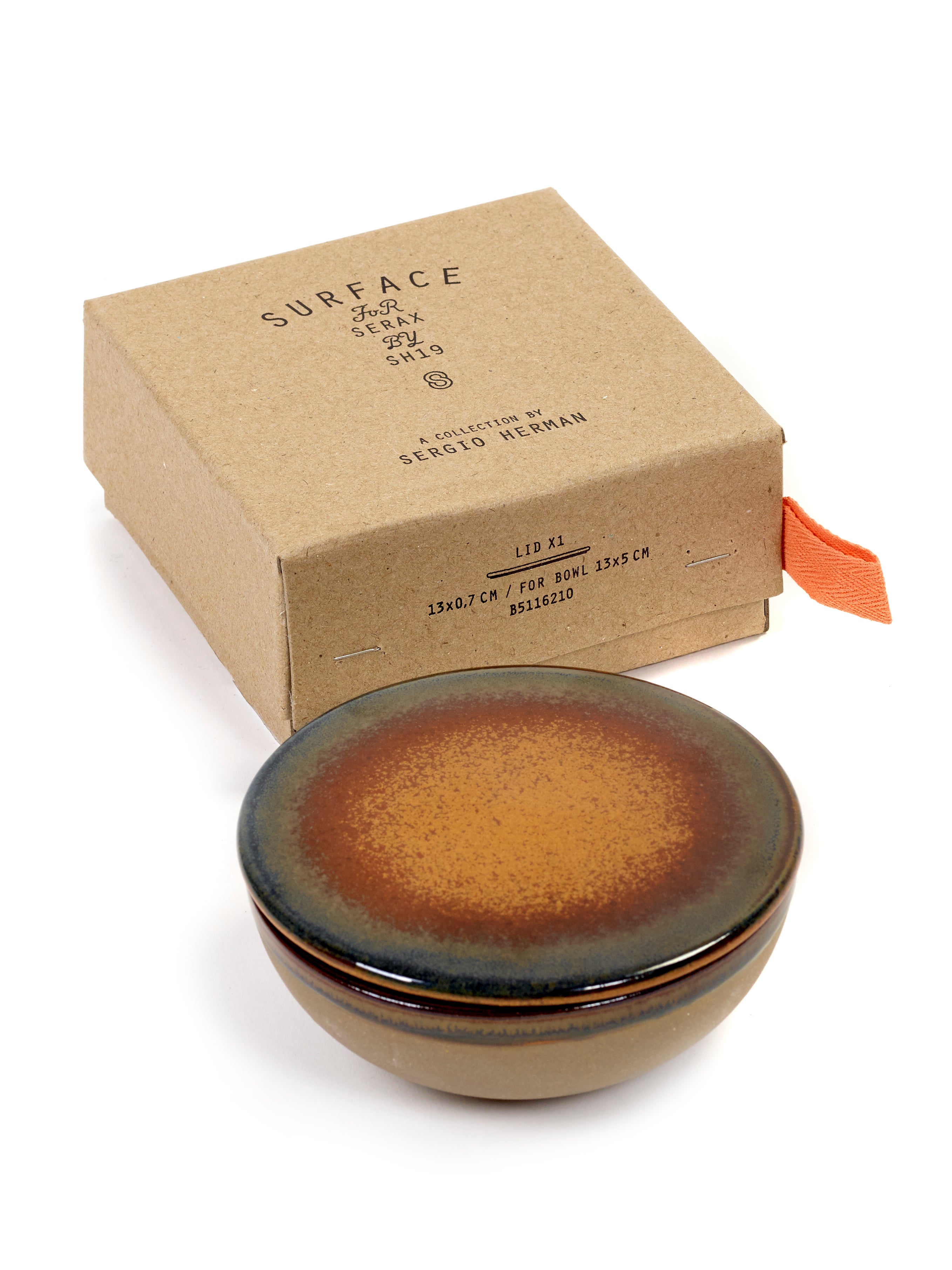 De Surface Bowl + Lid Grey/Rusty Brown is onderdeel van de Surface collectie, ontworpen door sterrenchef Sergio Herman in samenwerking met Serax. Deze kom met deksel combineert functionaliteit met de ruwe schoonheid van het Zeeuwse landschap.