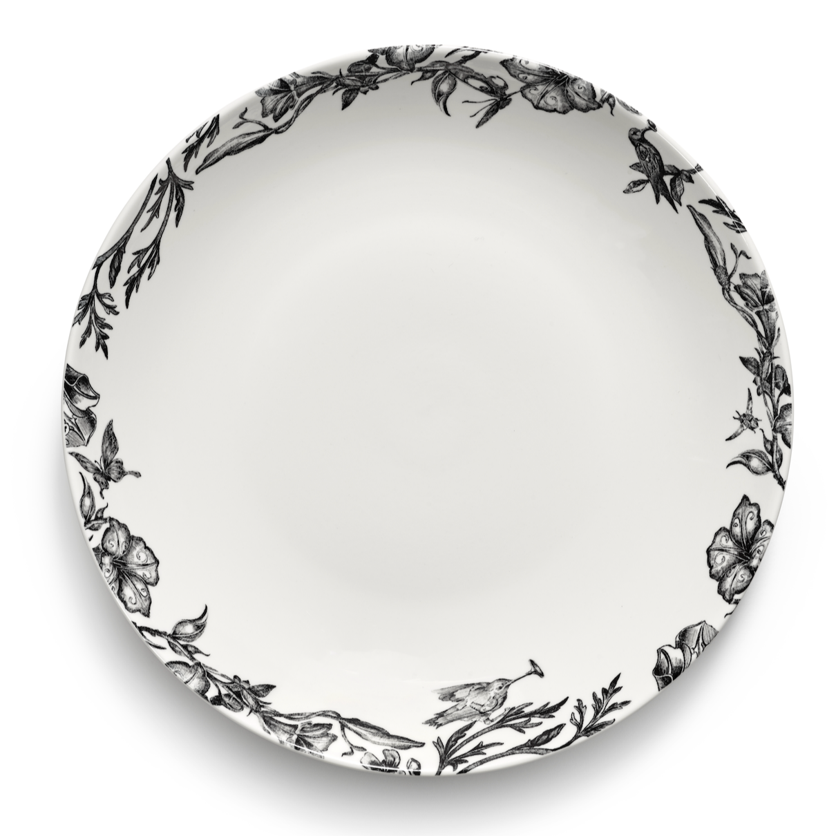 The Tomorrowland Low Bowl L Enchanted Garden by Serax is a spacious and low bowl that perfectly complements the rest of the Tomorrowland collection. Crafted from high-quality porcelain, this bowl features a subtle black and white design with flowers and birds, creating a natural and magical look. Its low design makes it ideal for stylishly serving dishes such as salads, soups, shared meals, and side dishes. With its high-quality finish and dishwasher safety, the bowl is suitable for both professional use in restaurants and at home. Each piece in the Tomorrowland line adds an atmospheric and refined touch to any table setting.