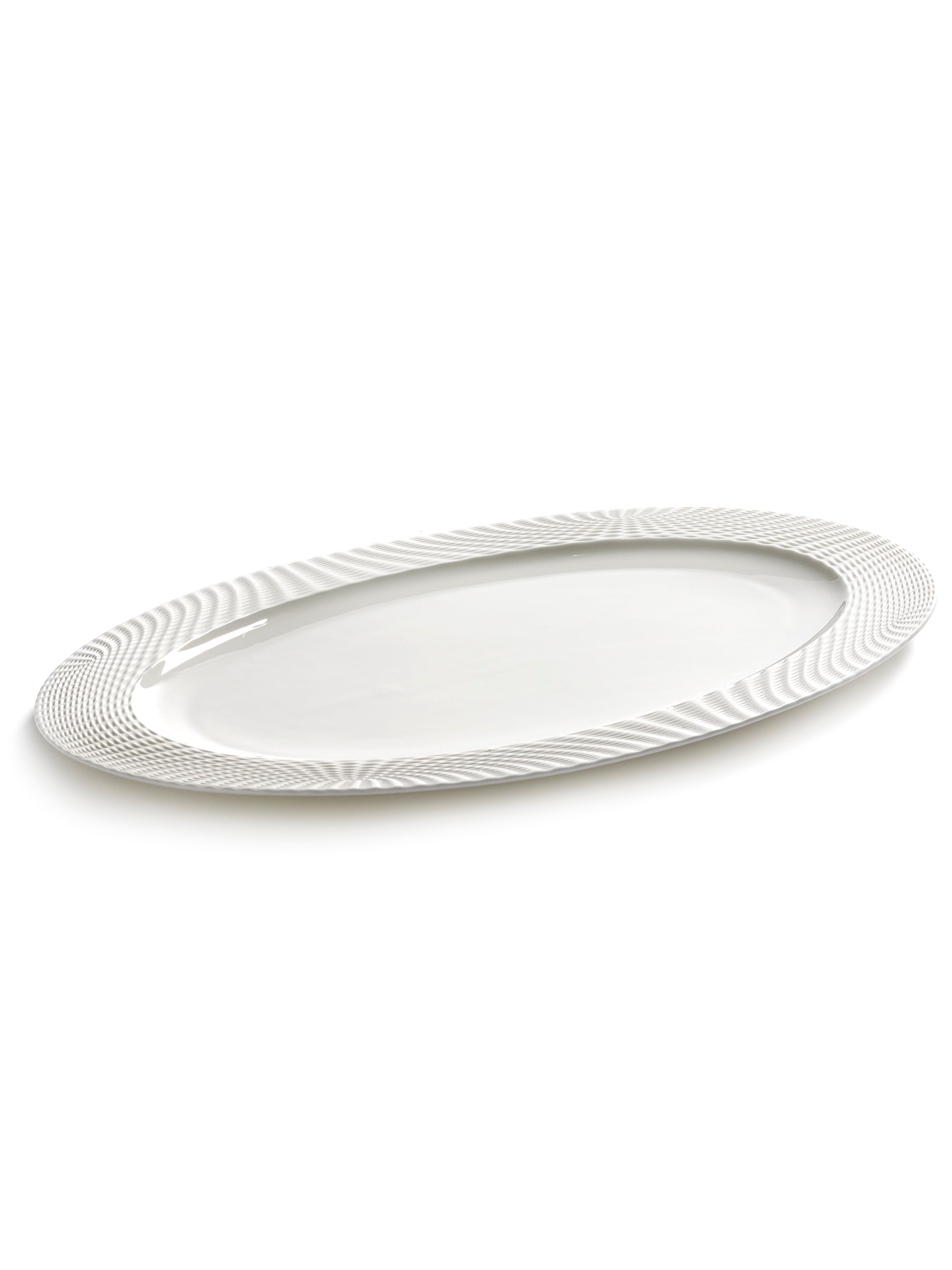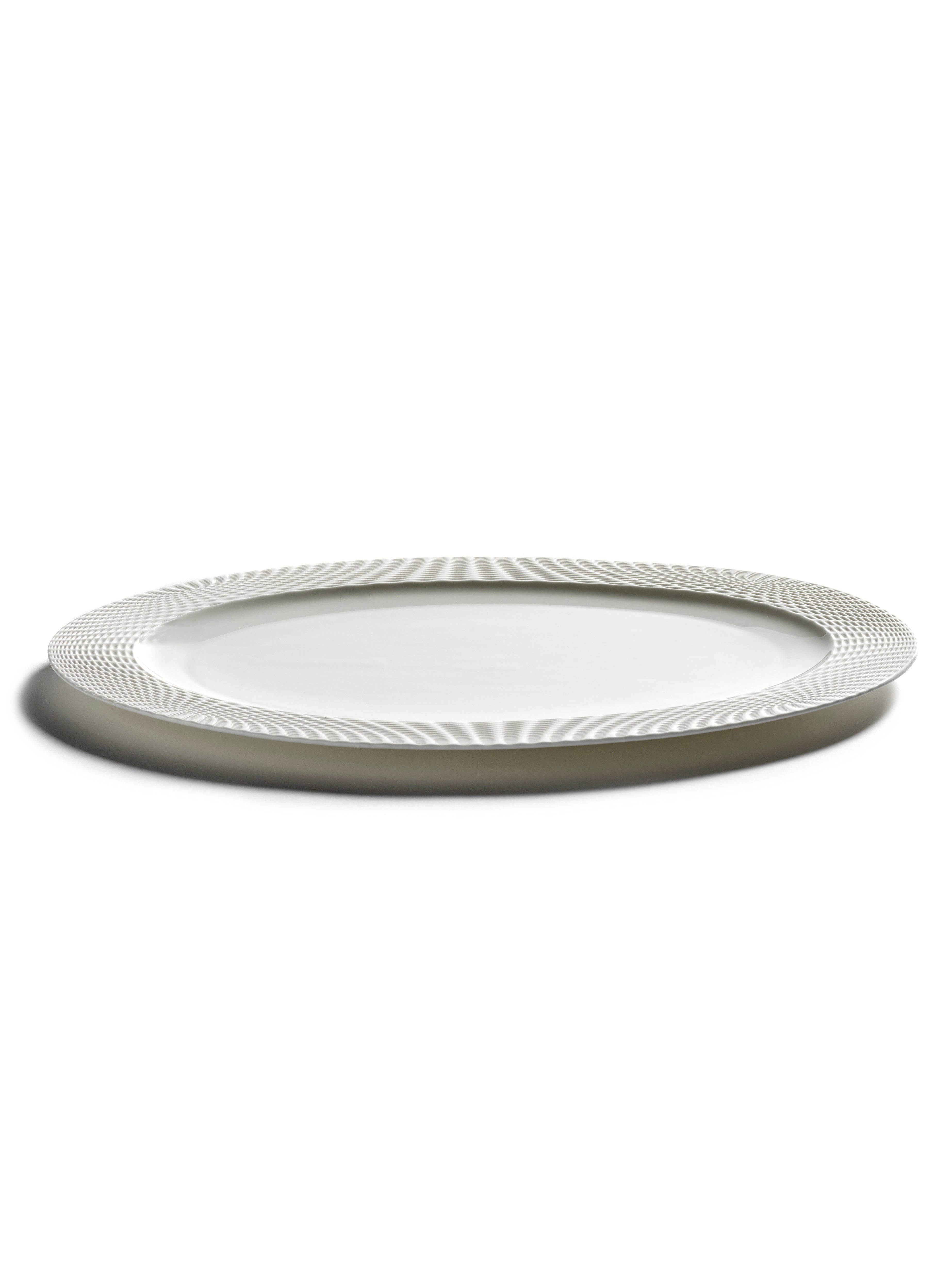 De Nido Oval Plate White is onderdeel van de veelgeprezen Nido collectie, ontworpen door Ann Van Hoey, een van de meest invloedrijke keramisten van België. Dit grote ovale bord is perfect voor het serveren van uitgebreide gerechten en indrukwekkende presentaties.