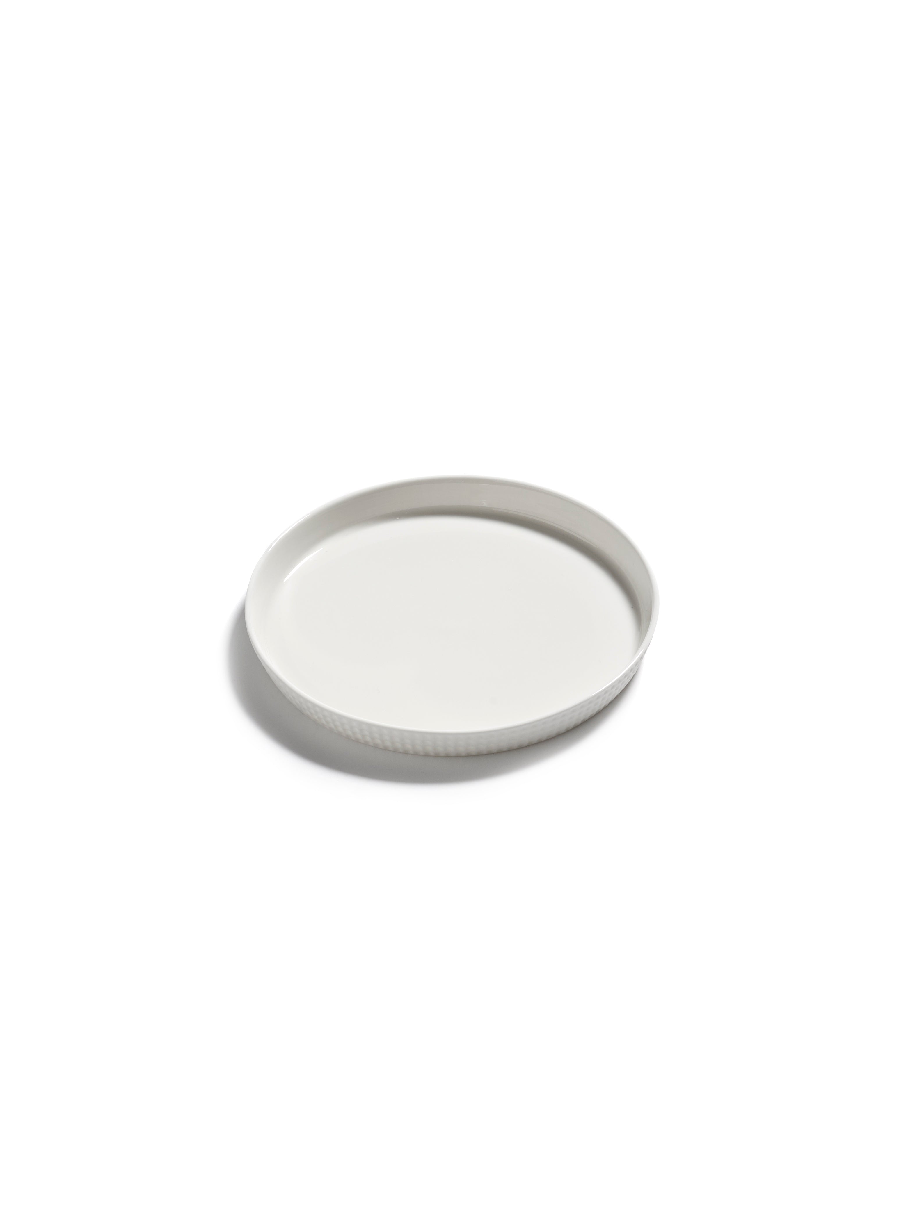 De Nido Plate Raised Edge M White is onderdeel van de veelgeprezen Nido collectie, ontworpen door Ann Van Hoey, een van de meest invloedrijke keramisten van België. Dit middelgrote bord met opstaande rand is veelzijdig inzetbaar voor diverse culinaire toepassingen.